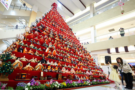 ひな人形の生産地としても知られる埼玉県鴻巣市で「鴻巣びっくりひな祭り」が開催されている。メイン会場の商業施設内に設けられた巨大ひな壇は31段で高さ約7メートル。展示は7日まで=2日 【時事通信社】