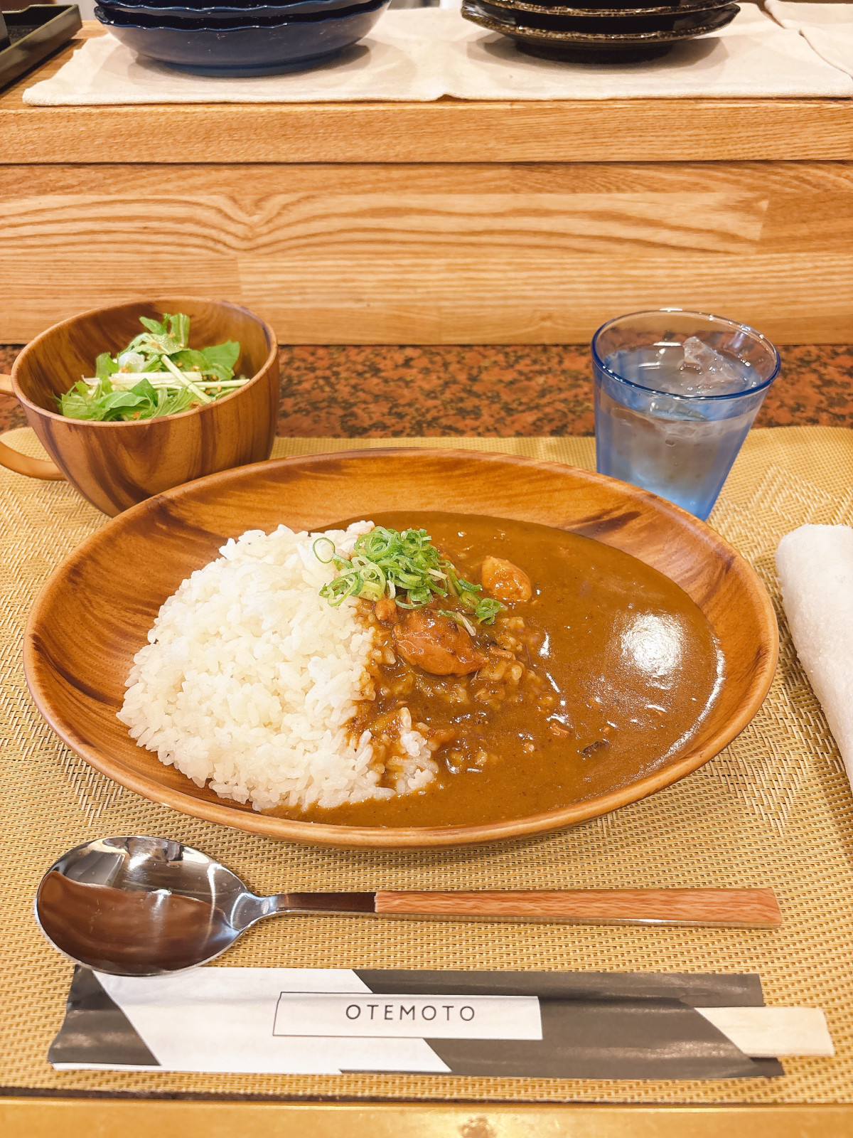 ランチはルーにおでんだしを使った和風カレー(1,000円)を提供。サラダとアイスコーヒーをセットにする。おでんに溶け込んだ具材が、ルーの味に深みを与えるという。(写真提供=和食バル ぴいぷる)