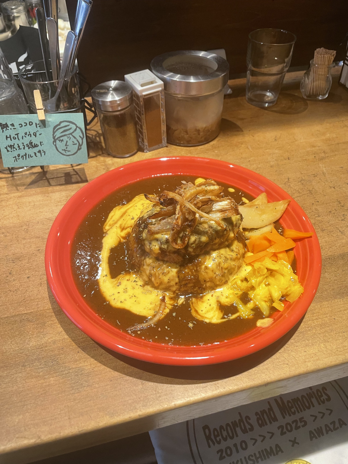 一番人気という手仕込みハンバーグのカレー=阿波座「カレー屋SUN^3」