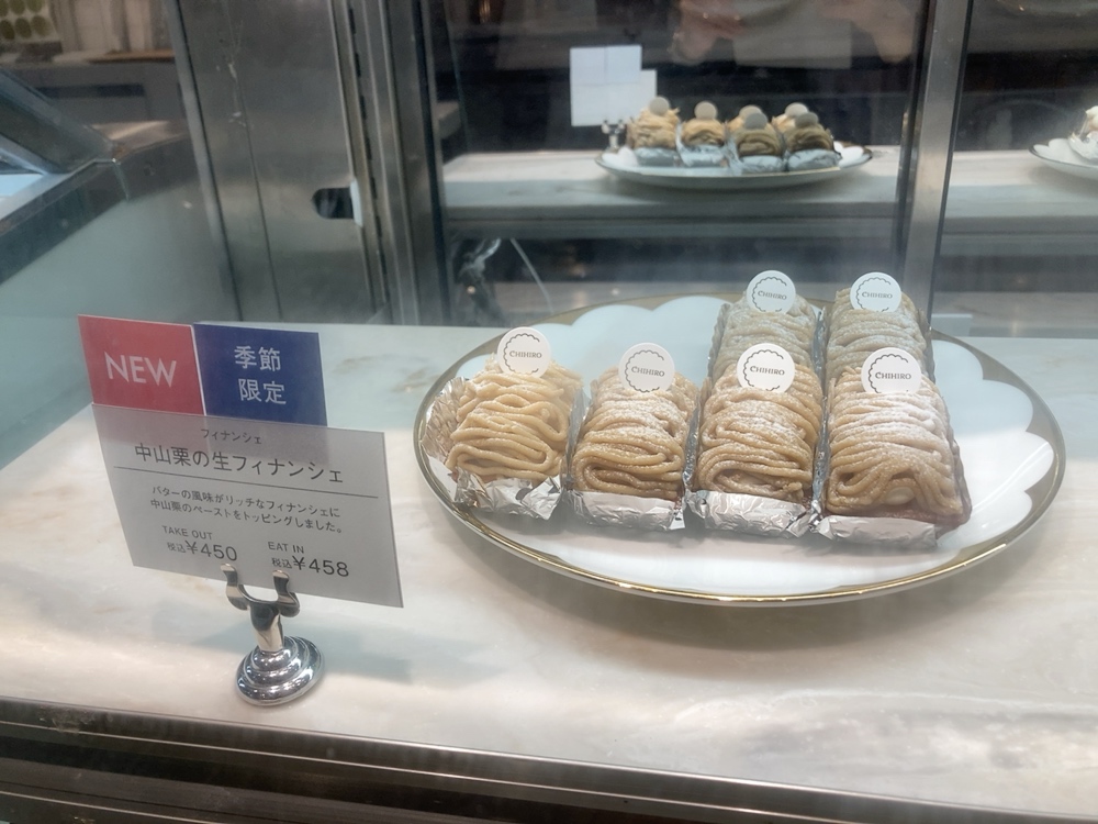 「中山栗の生フィナンシェ」(450円)は秋冬限定メニュー。イートインメニューではモンブランクリームを絞ったプリンなどを用意する。