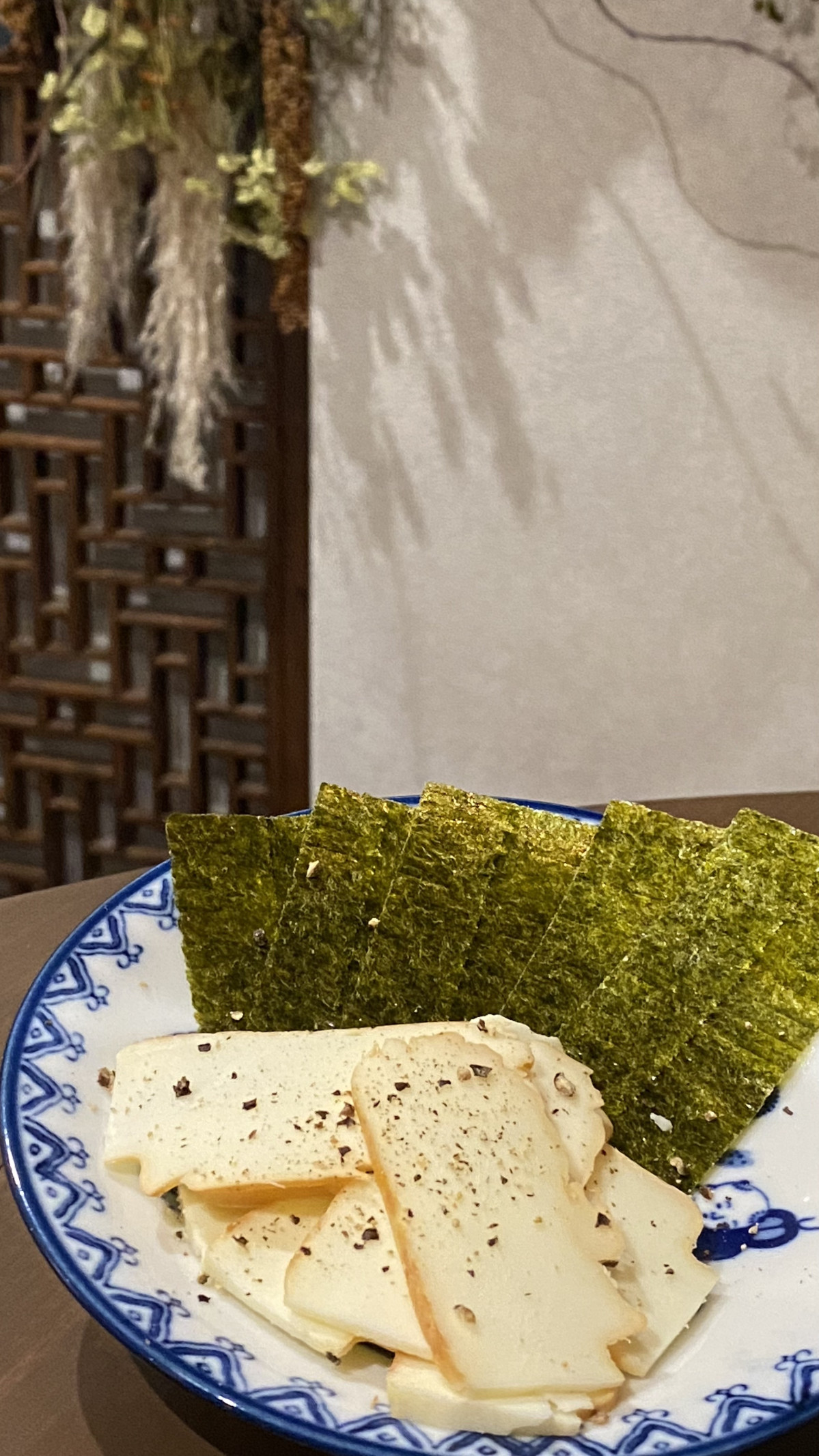 味付けのりを添えたチーズの燻製=肥後橋「余薫」