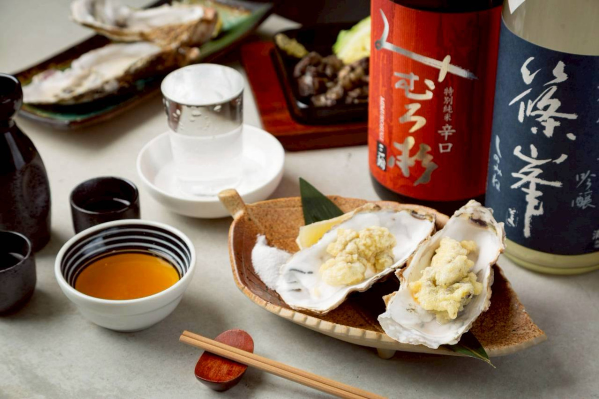 お薦めメニューの一つ「生牡蠣の天ぷら」(1,280円)は塩・レモン・天つゆを添えて提供する。カキはその時期でいいものを日本各地の産地から取り寄せる。(写真提供=鶏と牡蠣 屋良屋)