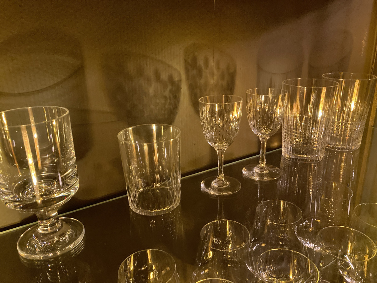 グラスはビンテージのバカラ。店内にはキャビネットを置きディスプレイする。