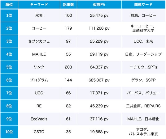 1位から3位、そして7位は共通の話題が元になっています。UCC上島珈琲とセブンーイレブン・ジャパンが共同開発したセブンカフェ「水素焙煎コーヒー」の発売が10月24日に発表されました。コーヒー焙煎の熱源に水素を用いることでおいしさとCO2排出量削減につなげた「未来をつくるコーヒー」とPRしています。