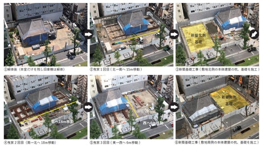 三度にわたる「曳家」工程の様子