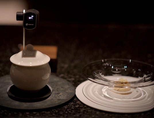 秋のOMAKASEコースでは、サイフォンの抽出方法を採用。コーヒーの粉をお湯に一定時間漬け込んでから抽出する方法「浸漬式(しんししき)」のため、コーヒーの成分を効率よく引き出せるのが特長で、抽出効率が高く、短時間でしっかりとした味わいを生み出します。一杯ごとに変化する味わいやアプローチを通して、コーヒーの奥深い魅力をじっくりとご堪能いただけます。秋の旬味とのペアリングとともにお楽しみください。