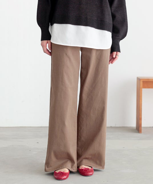 寒さに負けず暖かくアクティブに過ごしてほしいです。今年の春から発売して非常に人気を博しているフレキシンシリーズのゆるストレートワイドパンツに、裏起毛を施したあったかパンツを作りました。