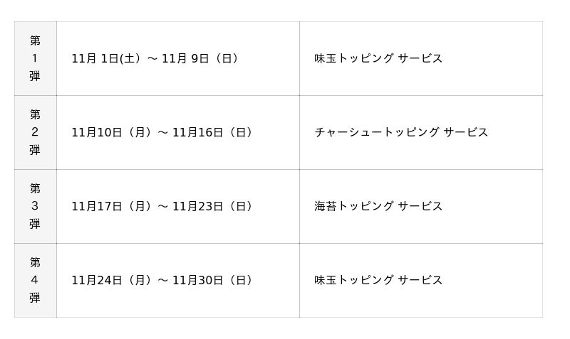 対象店舗: 全国の三田製麺所(一部フードコート除く)
