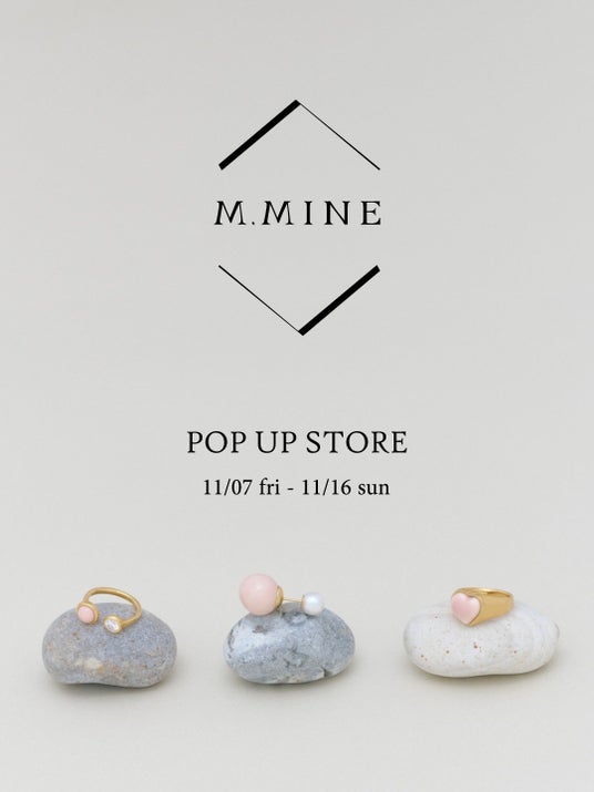会期中、CODE A POP UP店舗内にて「M.MINE(エムドットミネ)」のアクセサリーを展開いたします。新作を含む全ての商品をご覧いただけます。ぜひこの機会にご来店くださいませ。(※一部受注生産でのご案内となる可能性がございます)