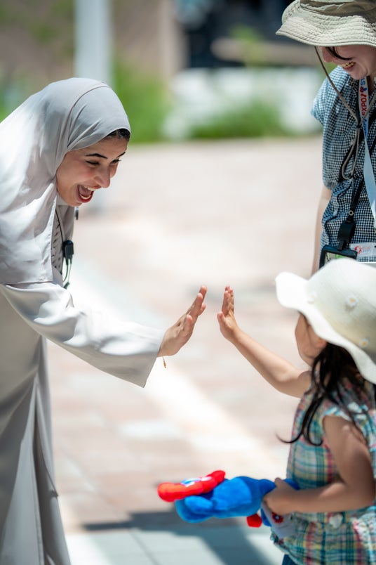 来館者は、アブダビ民間防衛庁による次世代消防ドローン〈SUHAIL(スハイル)〉の実演で革新の力を目の当たりにし、マイサ・ビント・サーレム・アル・シャムシ国務大臣を迎えて開催された「UAE-日本女性友好委員会(Women’s Friendship Committee)」や、シャイカ・ドクター・シャンマ・ビント・ムハンマド・ビン・ハーリド・アル・ナヒヤーン殿下による文化・社会的持続可能性に関する講演にも参加しました。