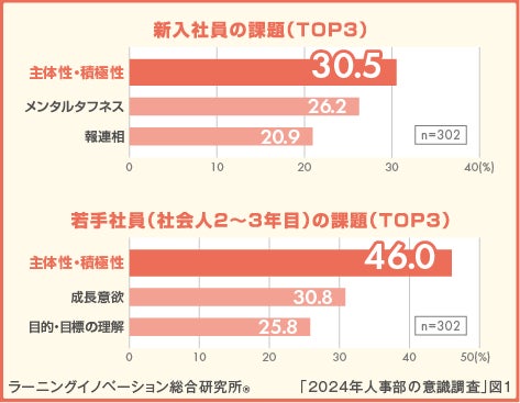 当社が実施した調査*では、人事担当者が新人・若手社員に対し最も感じる課題として、「主体性・積極性」が挙げられました(図1)。