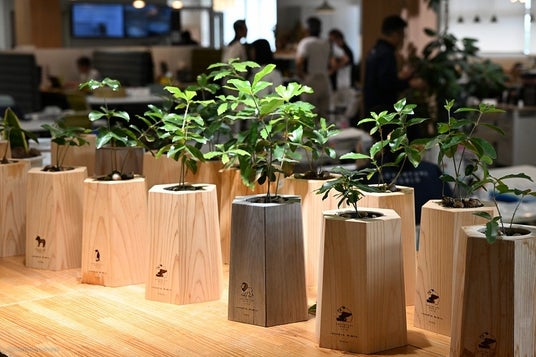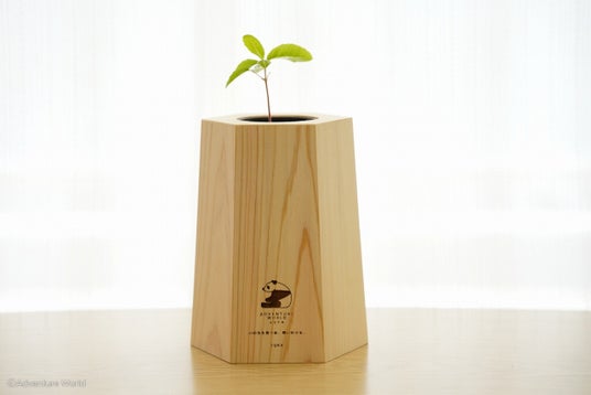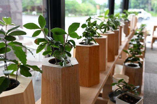 MODRINAEは、誰もが山づくりに参加できる新しい観葉植物です。どんぐりから苗木を育てるセットになっており、購入者の元で育った苗木は、ソマノベースが引き取り山へ植林します。育てる期間は約2年間。その後、苗木が植林される和歌山県の木材を使用した製品を購入することも可能です。