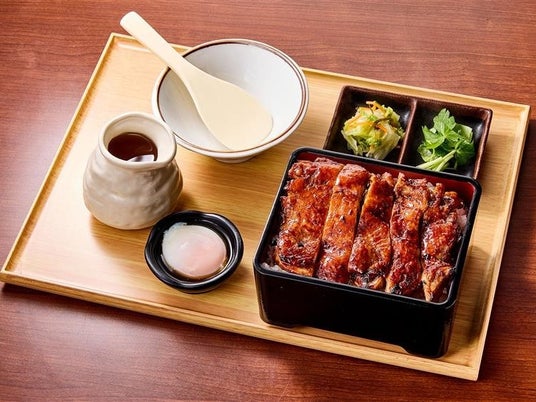 ◆もも一枚焼重(温玉・ダシ・お新香付) 一枚 990円 / 一.五枚 1,190円 / 二枚 1,490円「やきとり屋とりどーる」で一番人気のランチメニュー!炭火でじっくりと焼き上げた肉厚のもも肉を秘伝の自家製しょうゆダレに漬け込み、香ばしくジューシーに仕上げました。ごはんと相性抜群の一品で、まずはそのまま、次に温玉を絡めてマイルドに、最後は温かい出汁をかけてお茶漬け風にと、味わいの違いをお楽しみいただけます。