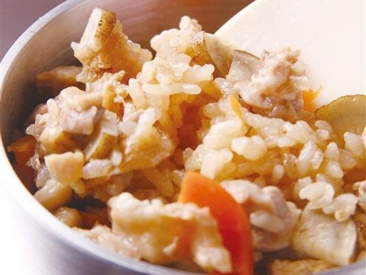 ◆鶏釜めし 820円「やきとり屋とりどーる」名物の釜めし。鶏肉やごぼう、人参などを20分以上炊き込み、あつあつ、炊き立てをお召し上がりいただきます。最初の一杯目はそのままで、二杯目以降はお好みでわさびやお吸い物をかけて、だし茶漬けにしてお楽しみください。