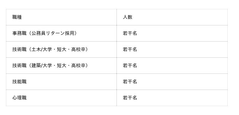 事務職は昨年度に引き続き、公務員として培った知識や経験を生かし、即戦力として活躍できる人材を確保するため、「公務員リターン採用」を実施します。