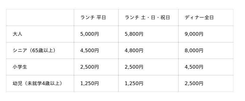 ディナー 17:30~20:30(土・日・祝日17:00~/休前日~21:00) 最大120分