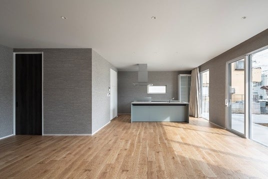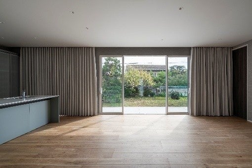 内部空間を実現しました。意匠性だけでなく居住性能にもこだわり、全サッシにペアガラスを採用した他、天井と壁、床の断熱性能を高めるとともに、リビングやキッチンには床暖房を完備させ、快適な住環境となるよう設計しました。また、老若男女が住みやすいよう、内部の段差を排除し、加えて単純明快な動線の間取りとすることで、将来にわたってストレスなく暮らせる機能的な住まいとなっています。