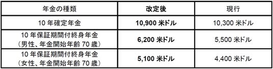 2.改定内容:年金支払開始後の米ドルの予定利率を以下のとおり引き上げ