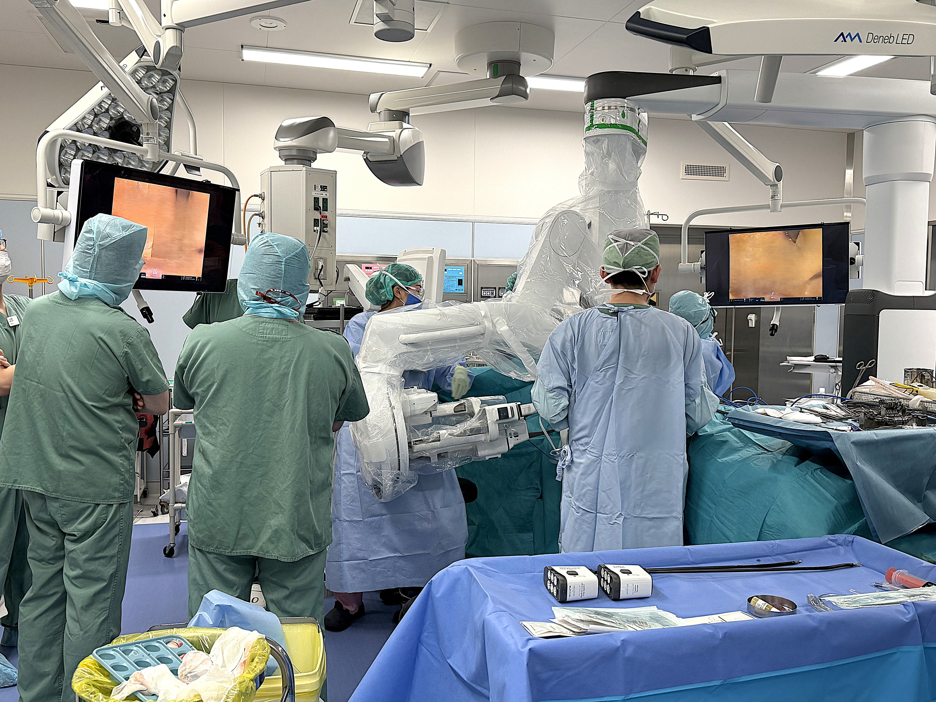 当院の「先端ロボット手術センター」では、既存の「ダビンチXi」、今回使用した「ダビンチSP」、ならびに昨年7月に導入した最新モデル「ダビンチ5」、良性疾患にも適応可能な「Senhance」、人工膝関節手術用の「Mako System」の計5台の手術支援ロボットを稼働させ、幅広い疾患・症例に対応したロボット手術を推進しています。
