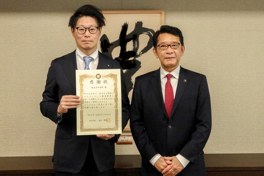 今回の寄附は、「豊中市の新たな観光・交流スポットとなる豊中つばさ公園整備に貢献したい」という意向によるもので、長内繁樹豊中市長より感謝状を贈呈しました。