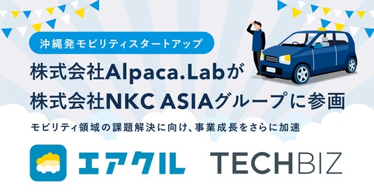 運転代行・ドライバー向け配車プラットフォーム「AIRCLE(エアクル)」を展開する株式会社Alpaca.Lab(本社:沖縄県中頭郡中城村、代表取締役:棚原生磨)は、このたび、フリーランスと企業のマッチングサービス「TECHBIZ(テックビズ)」を中心に、全国9拠点で事業を展開しているマッチングエージェンシーの株式会社NKC ASIA(本社:東京都渋谷区、代表取締役:中島一樹)のグループに参画したことをお知らせいたします。