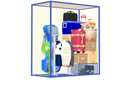 一般的なサイズの段ボールで、約18~36個分の大きさとなり、クローゼットの代わりに使えるくらいの広さです。オフシーズンの衣服・布団・家電や、スーツケース等の収納ができます。